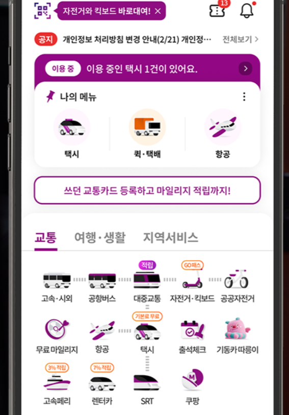 예매 알림, 태그리스 검표 기능까지 있어요.